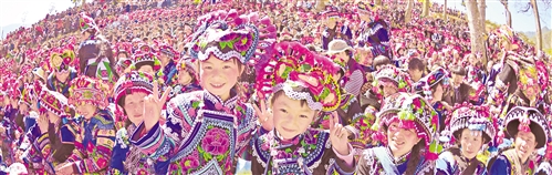 2月10日,云南楚雄彝族自治州群众身着民族盛装,欢度新春佳节。经济日报-中国经济网记者 高兴贵摄