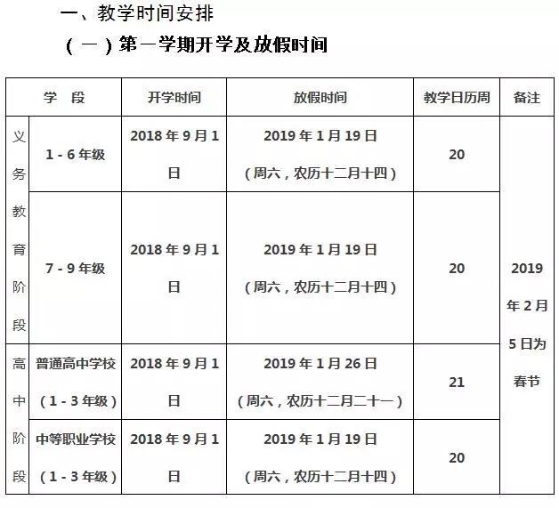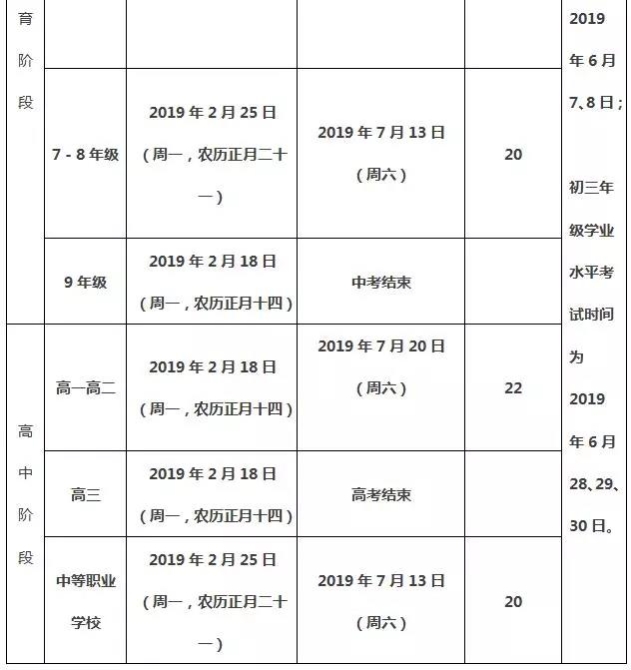 开学时间结合中高考时间、节假日安排