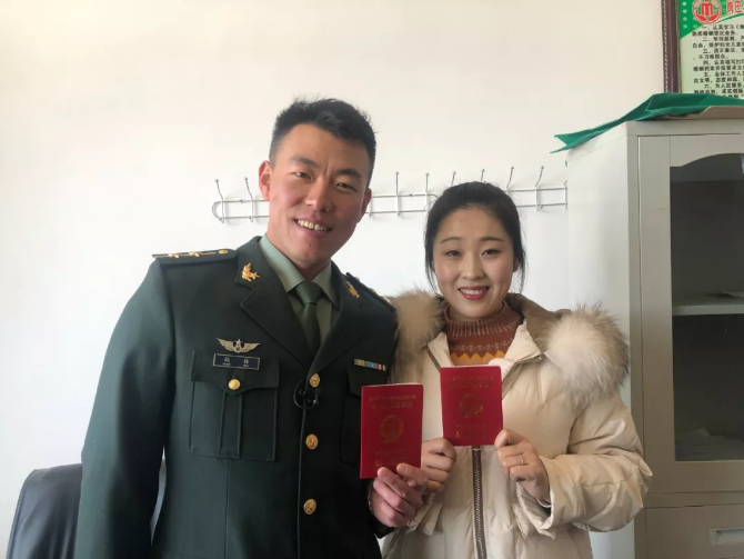 边防军人不易,边防军人的军婚更加不易。从烟台到岗巴,从祖国的东边到祖国的西边,4000多公里的路程、高原反应、对陌生环境的不适应都没有击退这个倔强的姑娘。过年期间,岗巴县民政局的工作人员已经放假,驻地政府在得知新娘阎晓宁不远万里来到岗巴的事情后,经过与营里协商,特事特办,民政局为岗巴营这对新人开门办理结婚证。“请在这里签字”,新人赵伟和阎晓宁拿到了他们的结婚证,正式步入婚姻的殿堂。
