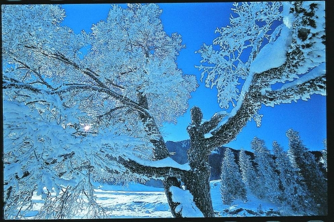 说到新疆的冰雪之美,郝沛立刻找出他几年前拍过的巩乃斯雾凇,并且激动地向记者讲述。