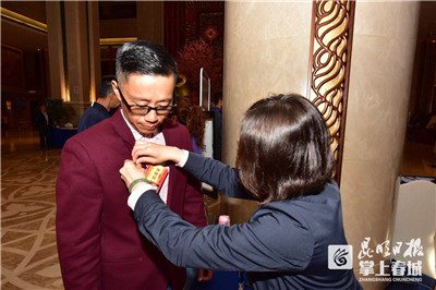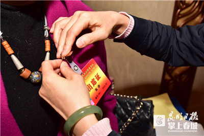 工作人员为与会委员佩戴出席证。掌上春城 记者邓斌/摄