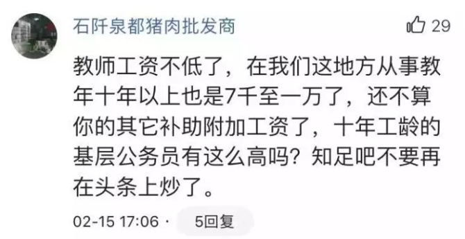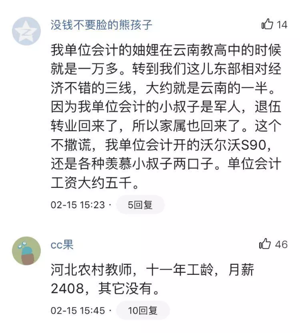 对于目前大多数教师的薪资水平、怎么看待教师待遇、怎么评价待遇的高低才客观等问题,众多网友进行了热烈的讨论,有教师还晒出了自己工资单……