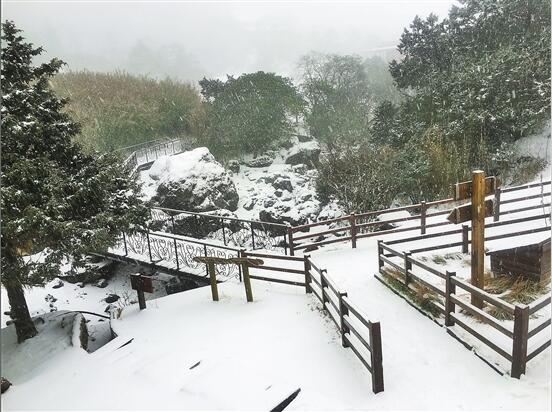 2月17日下午,昆明主城区艳阳高照,而在距主城区100多公里外的昆明轿子雪山风景区,下起了今年入春的第一场雪。千余名游客在银装素裹的冰雪世界里,尽情踏雪观景、拍照留念。