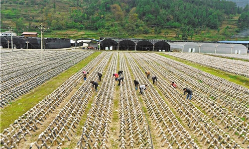 敖寨乡村民在木耳基地整理菌棒。经济日报-中国经济网 记者王新伟/摄