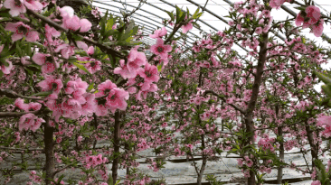 2月12日,正月初八,记者来到一师九团十一连温室大棚种植基地,只见一排排钢架大棚犹如一条条白色长龙俯卧田间。眼下,室外乍暖还寒,棚内温暖如春。在水蜜桃大棚里,满棚的桃花花开正艳,一朵朵、一簇簇粉红艳丽的花挂满枝头,阵阵清香沁人心脾,一幅春意盎然的别样景象。