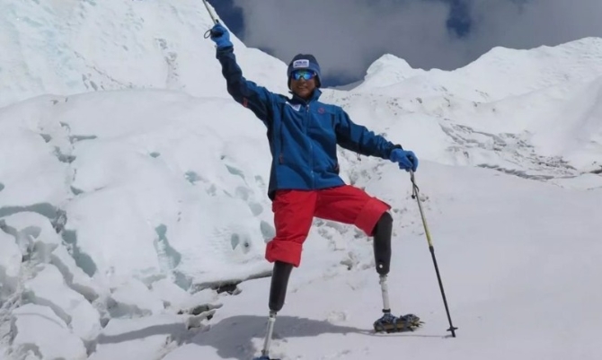 让我们把时间线拉回到9个月前,北京时间2018年5月14日10时40分,同样是踩着一对假肢,69岁的夏伯渝站在了世界之巅,向世界宣布:“我成功登顶珠穆朗玛峰,梦想终于实现。”