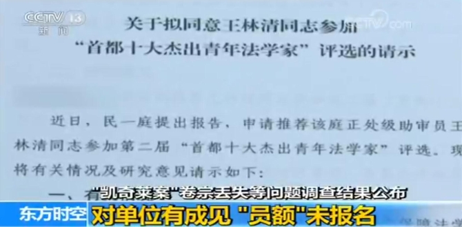 另据调查,2016年6月,最高法政治部就王林清参评第二届“首都十大杰出青年法学家”向监察局征求意见,监察局回复“同意推荐其参评”的意见。后王林清获得“首都十大杰出青年法学家”提名。表明最高法监察局并未对王林清参评荣誉称号设置障碍。