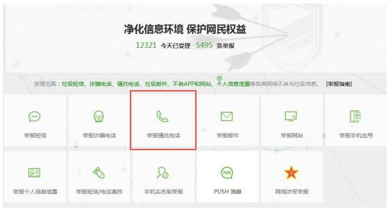 12321官网首页举报骚扰电话截图