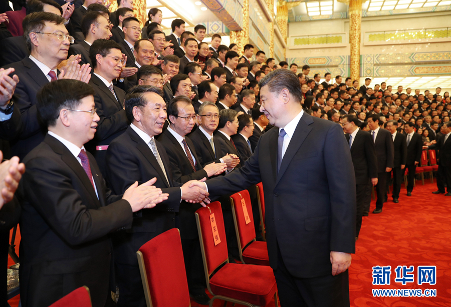2月20日,党和国家领导人习近平、李克强、栗战书、汪洋、王沪宁、赵乐际、韩正等在北京人民大会堂会见探月工程嫦娥四号任务参研参试人员代表。 新华社记者鞠鹏/摄