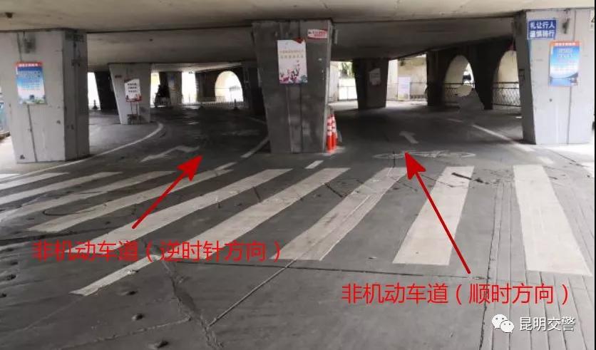 昆明信息港讯 据昆明交警微信公众号发布的消息,为规范西站立交桥道路通行秩序,五华区政府对交桥底层违规市场进行了全部取缔和拆除,底层环岛从外到内依次设置为机动车道、非机动车道、人行道,在相应位置设置交通标志及人行横道线。