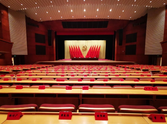△开学典礼在党校礼堂一层举行。(央视记者张晓鹏拍摄)