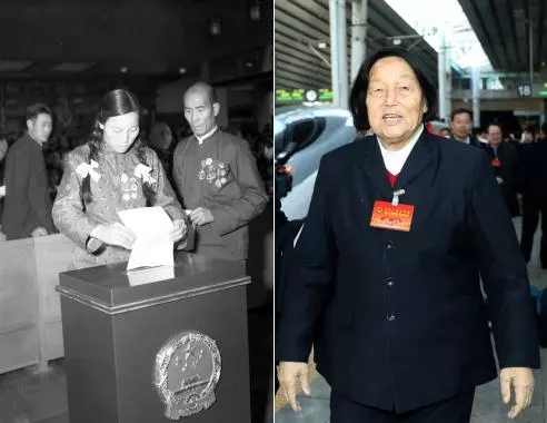 (图左)1954年,全国人大代表申纪兰参加第一届全国人大第一次会议。(新华社记者曹兴华摄)