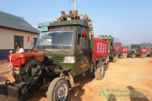 2月27日一大早,由50多辆拖拉机、10余辆摩托组成的搬家车队,满载着幸福的喜悦,整整齐齐行驶在214国道上,澜沧拉祜族自治县上允镇上允村团山组的55户179名汉族、拉祜族同胞告别了他们世世代代居住的家,前往盼望已久的新家园,开始他们的新生活。