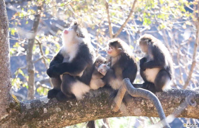 近日,在维西县塔城镇响古箐滇金丝猴国家公园里,猴王“大个子”迎来了自己的猴宝宝。猴宝宝的到来让一家人高兴不已,猴爸爸和猴妈妈们轮流照顾小宝宝,画面暖心又有爱。