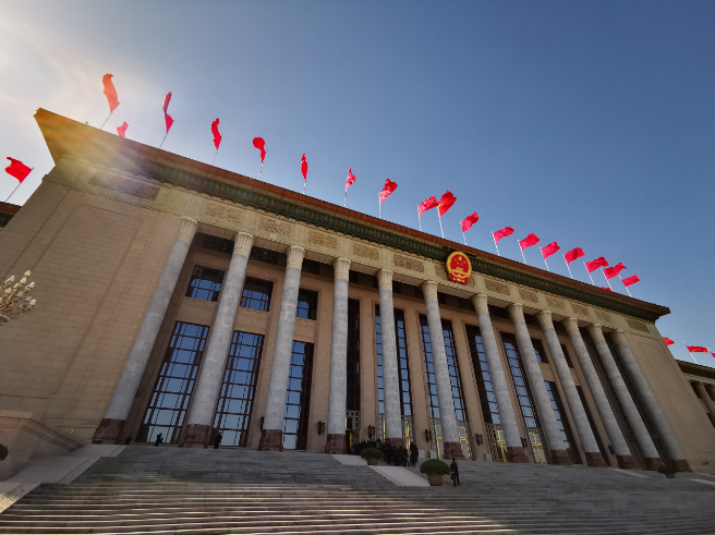 下午两点的人民大会堂东门外。虽是早春,北京的气温已经攀升到近20度。(央视记者张晓鹏拍摄)