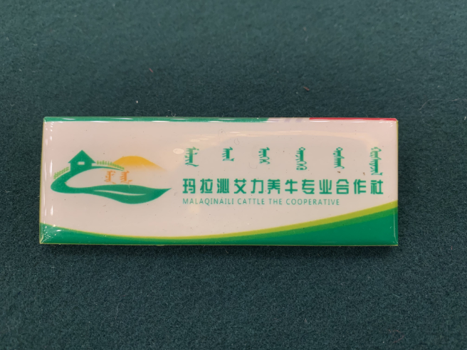 吴云波把合作社的这个胸牌送给了总书记。合作社的名字“玛拉沁艾力”是“牧民之家”的意思。