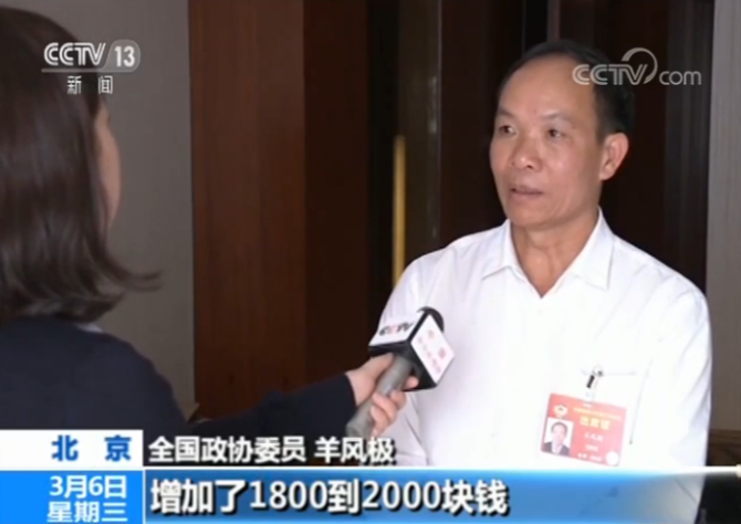 全国政协委员 羊风极(海南省白沙黎族自治县打安镇副镇长兼田表村村支部书记):因为我们中部地区也是欠发达地区,如果再不加大补助的话,农民就没有积极性了,所以我也希望通过今年的提案,引起有关部门的关注,来推动我们的脱贫攻坚。
