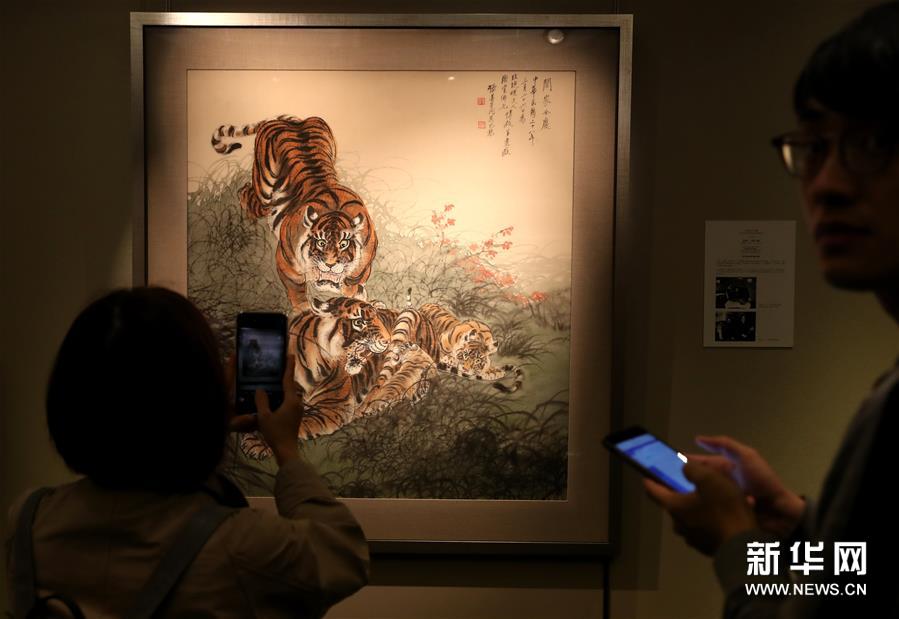 3月7日,媒体工作者在参观拍摄张善子的《合家全庆》。 新华社 记者李钢/摄