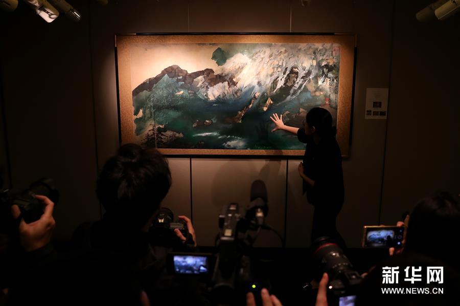 3月7日,工作人员介绍张大千的《伊吾闾瑞雪图》。 新华社记者李钢/摄