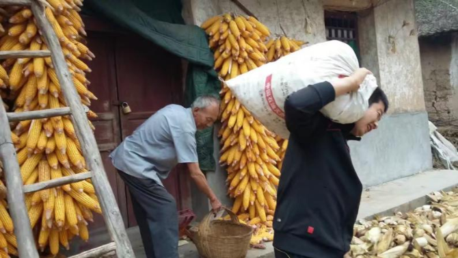 △正在老乡家收土特产的赵世佳