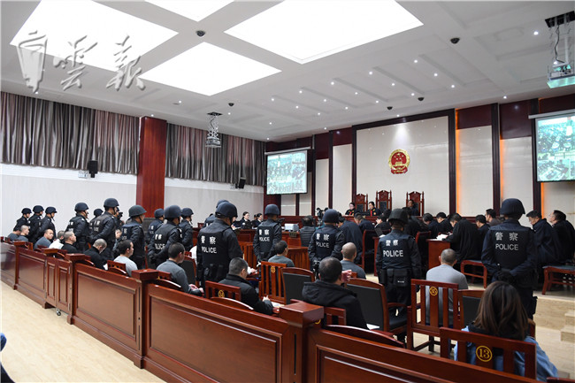 3月11日,丽江市古城区人民法院第一法庭公开开庭审理了被告人李晓龙等21人涉嫌犯组织、领导、参加黑社会性质组织罪、故意伤害罪、非法持有枪支弹药罪、非法拘禁罪、寻衅滋事罪、敲诈勒索罪、抢劫罪一案,该案系丽江市开展扫黑除恶专项斗争以来公开审理的首例涉黑案件。