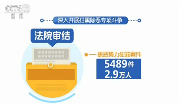 深入开展扫黑除恶专项斗争,法院审结黑恶势力犯罪案件5489件2.9万人。严惩“村霸”“市霸”,黑恶势力保护伞。