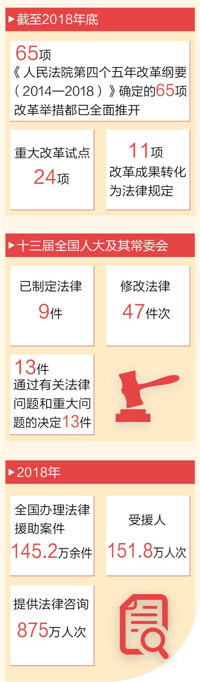 党的十九大报告指出,全面依法治国是国家治理的一场深刻革命,必须坚持厉行法治。在以习近平同志为核心的党中央坚强领导下,法治建设成果丰硕,人民群众获得感进一步增强。从司法体制综合配套改革到智慧法院建设,从扫黑除恶专项斗争到以审判为中心的刑事诉讼制度改革,法治领域改革不断推进。代表委员们一致认为,如今人民群众对美好生活的向往更多向民主、法治、公平、正义、安全、环境等方面延展,必须打造公正司法,努力让人民群众在每一个司法案件中感受到公平正义。