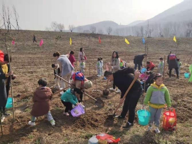 在陕西秦岭国家植物园内,来自西安周边多所学校的学生有的手握树苗,有的提桶浇水,“我每年都会来看你”“祝小树苗茁壮成长”……在一些栽植好的树苗上挂着牌子,上面写满祝福语。