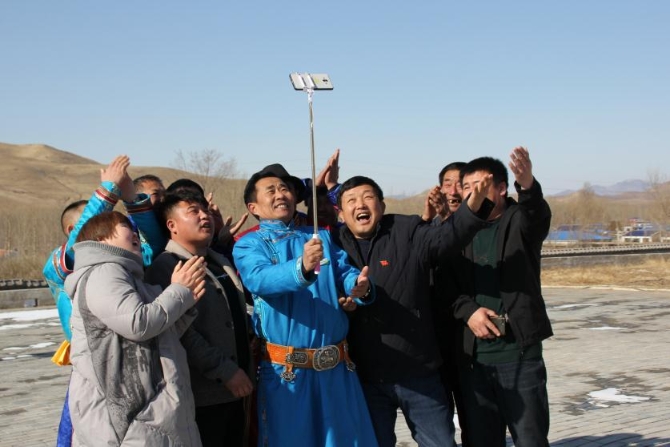 东萨拉嘎查牧民通过微信与在北京开会的吴云波视频通话