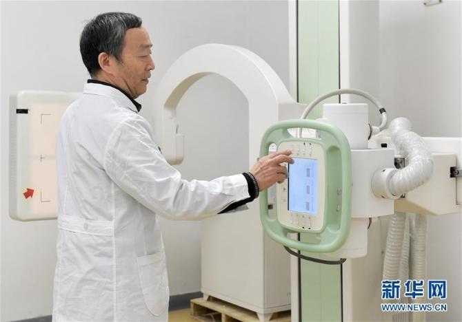 在乌鲁木齐市天山区黑甲山社区卫生服务中心,医生李海堂在操作数字化医疗设备(3月12日摄)。新华社 记者王菲/摄