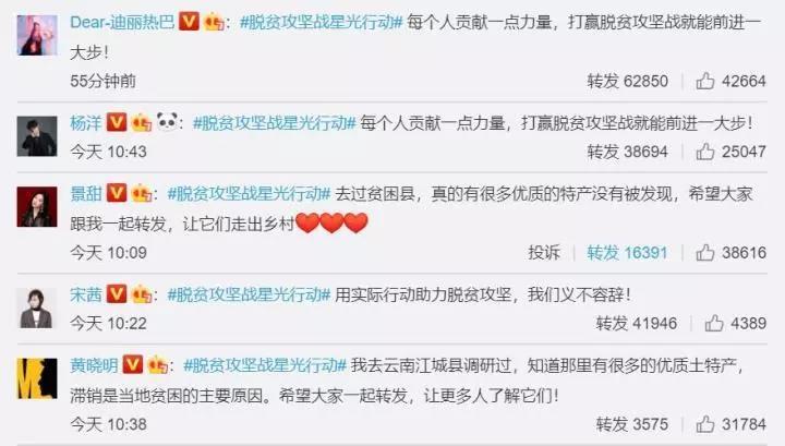 杨幂:“希望大家跟我一起转发,让更多优质特产被发现,一起助力脱贫攻坚!”