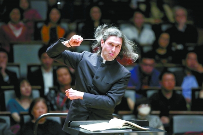 尤洛夫斯基的指挥动作夸张,富有戏剧性。牛小北 摄