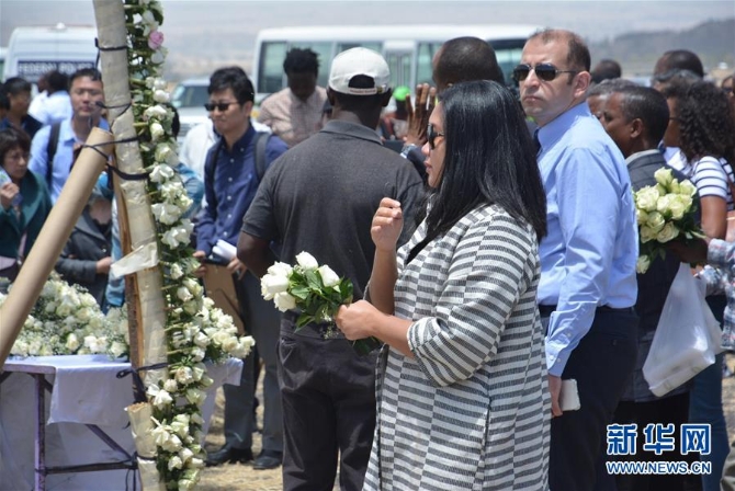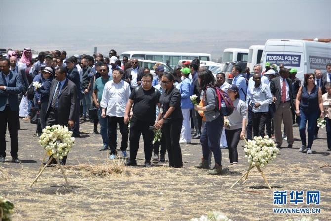 这是3月13日在埃塞俄比亚首都亚的斯亚贝巴附近的坠机现场拍摄的悼念活动。 10日,埃塞俄比亚航空公司一架计划从埃塞俄比亚首都亚的斯亚贝巴飞往肯尼亚首都内罗毕的客机在埃塞俄比亚境内坠毁,机上157名乘客和机组人员全部遇难。新华社发 奈尔维什/摄
