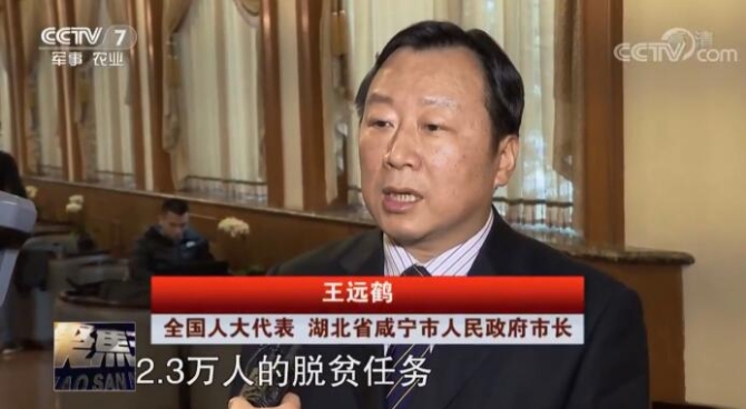 全国人大代表、湖北省咸宁市人民政府市长 王远鹤:我们今年要完成2.3万人的脱贫任务,要保证咸宁幕阜山连片贫困地区整体脱贫。我们按照两会的精神,进一步转变作风,进一步压实责任,进一步落实政策,进一步激发内生动力,坚决打赢脱贫攻坚这场硬仗,确保如期完成目标任务。