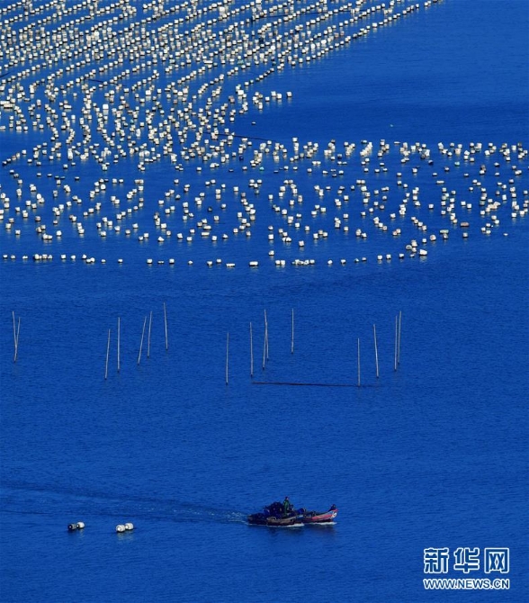 在霞浦县三沙海面上,小渔船开赴海上作业区(3月15日摄)。近日,福建宁德霞浦县海域云蒸雾涌,岛屿若隐若现,美丽如画。 新华社 记者魏培全/摄