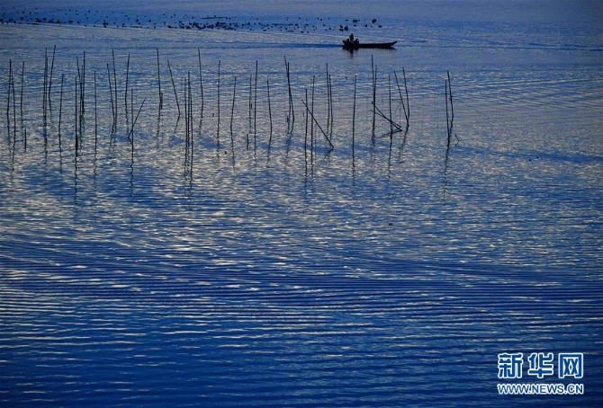霞浦县三沙海面上的落日余晖(3月15日摄)。近日,福建宁德霞浦县海域云蒸雾涌,岛屿若隐若现,美丽如画。 新华社 记者魏培全/摄
