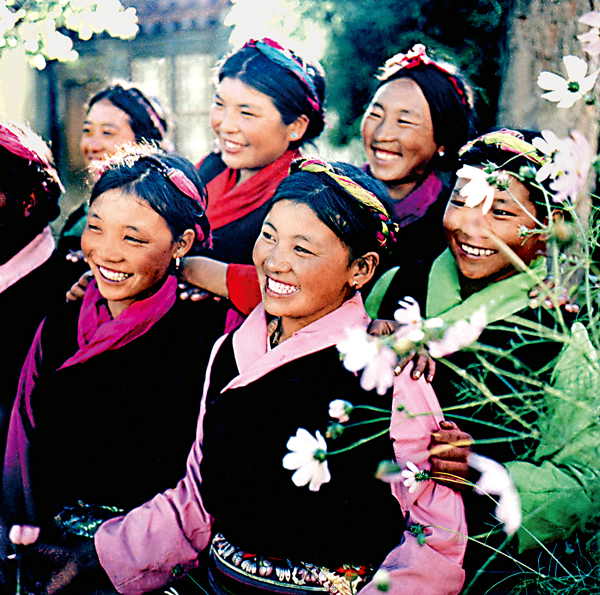 西藏民主改革前,妇女的社会地位很低。西藏民主改革后,妇女的社会地位迅速提高。上图为1960年面带笑容的拉萨青年妇女(人民画报 何世尧/摄)。下图为民主改革前饥寒交迫的女奴(资料图片 西藏日报社供图)。
