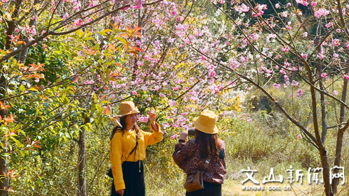 看尽樱花满园,又是月挂竹梢的时候,回到彝家客栈,吃过可口的菜肴和飘香的米酒,凭栏放飞思绪,想起白日里四处萌动的春色,昂首又遥想到了秋月,禁不住感叹携带着无数沉浮不定的生物匆匆行进的时光。我喜爱杜甫“岸花飞送客,樯燕语留人”的景致意境,更钦佩花儿执著忘我的一种精神:盛开时义无反顾,凋谢时没有丝毫悔意。因为它生命的真正意义在于把美丽留给人间,哪怕只是一瞬间的绽放。同样,人生在世也应时刻绽放美丽的心情,抛开一切尘世的烦扰,张开“花瓣”一样的臂膀拥抱精彩的世界,像含笑吐蕊的樱花一样笑对人生。(文山新闻网 作者李顺/文 谭于骞 陆华秀/图)