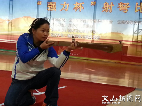 刚结束的云南省第十一届少数民族传统体育运动会(简称“省第十一届民族运动会”)传出好消息:文山州苗族女射弩运动员侯云丽在全省16个地州市48名女射弩运动员激烈竞争中,艺压群雄勇夺3金5银1铜,其中三项冠军:女子传统弩跪姿第一名、女子标准弩跪姿第一名、女子标准弩全能第一名。她成为本届民运会女射弩第一英雄,堪称文山大山中飞出“苗家射弩金凤凰”。