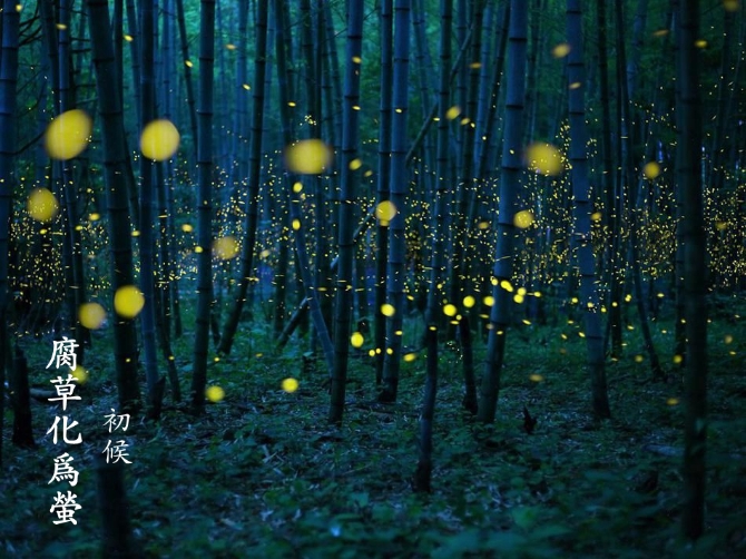 萤火虫在夏季多就水草产卵,古人便误以为是由腐草变化而成。大暑时节,空山飞流萤,天气湿热难耐,土壤也湿气潮润,时常有雷雨突然出现。