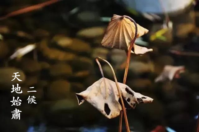 为冬日避寒,鸿雁成群结队往南飞,成为天空中最有代表性的秋天符号。雀鸟们因为冷而躲藏起来,深秋天寒时,蛤类大量繁殖,古时候人们认为贝类蛤蜊的条纹和鸟雀很像,便认为蛤蜊是鸟雀变的。而菊花开在寒露,经霜而不凋。