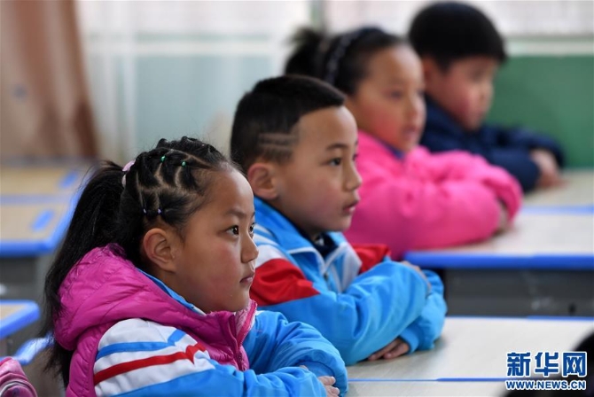 3月4日,在拉萨市第一小学,学生在认真听课。新华社记者 觉果 摄