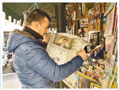 罗马街头,一位当地市民阅读习近平主席在《晚邮报》发表的署名文章。本报记者 姜 波摄