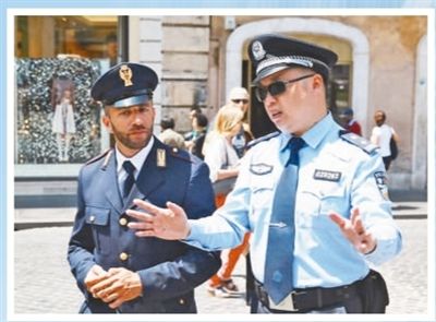 中意警察在罗马街头联合巡逻。本报记者 韩秉宸摄