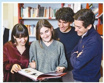 罗马国立住读学校学生正在图书馆翻阅中文书籍。本报记者 韩秉宸摄