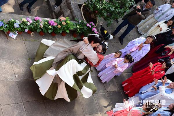 从2016年开始,金殿景区在每年3月惊蛰到春分之间都会联合云南省汉服协会举办花朝节花神祭祀活动,至今已举办了三届,规模和影响力日渐扩大。而且金殿花朝节花神祭祀活动,已成为“世界春城花都”文化内涵的重要组成部分。今年第四届花朝节花神祭祀活动以“月夕花朝·古礼祭花神”为主题,游客可以近距离感受花朝节及汉文化的独特魅力。