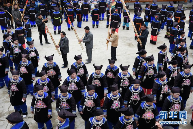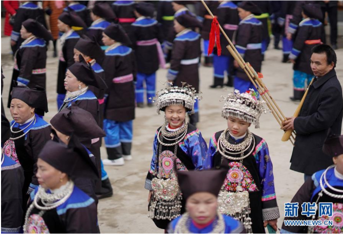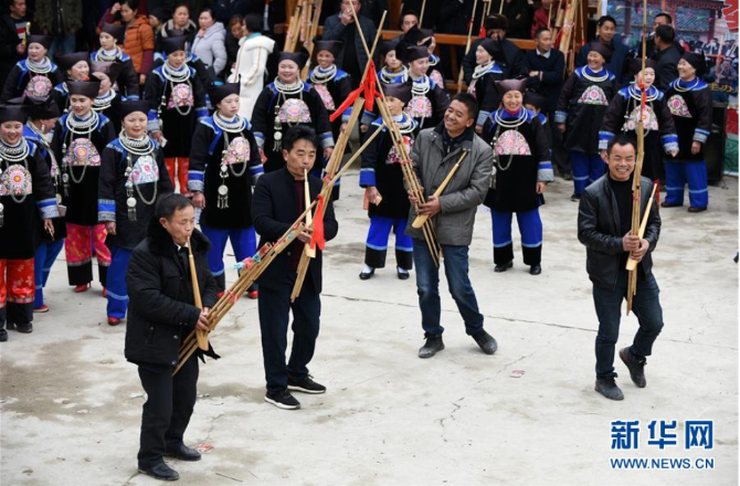 3月23日,群众在跳芦笙舞。 连日来,在贵州省剑河县岑松镇岑松社区对门寨,来自周边村寨的少数民族群众欢聚一堂,通过跳芦笙舞、对情歌、唱苗族古歌等方式,欢度民族芦笙歌舞文化节。新华社记者陈晔华/摄