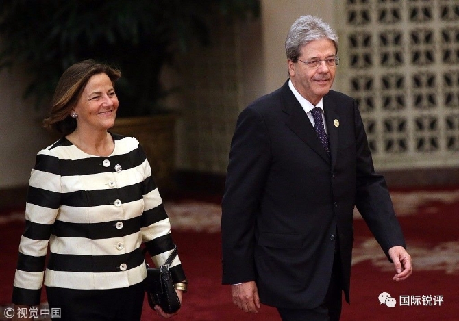 2017年5月,“一带一路”国际合作高峰论坛在北京举行,意大利总理保罗·真蒂洛尼出席。 图片来源:视觉中国