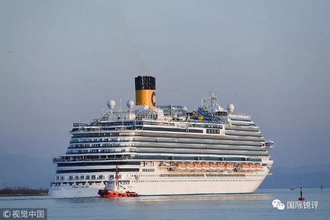 2019年2月28日,意大利一艘专门为中国市场量身打造的邮轮——歌诗达“威尼斯”号邮轮离开造船厂下水。“威尼斯”号可容纳5260名中国游客。 图片来源:视觉中国