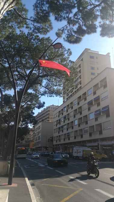 △蒙特卡洛赛道上的中国国旗。蒙特卡洛是摩纳哥最著名的一个区。每年五月,狭窄弯曲的街道经过约六周的筹备,化身为无数顶尖车手又爱又恨的“蒙特卡洛赛道”。(央视记者黄京辉拍摄)